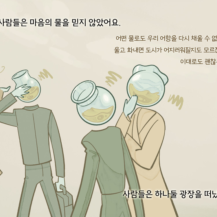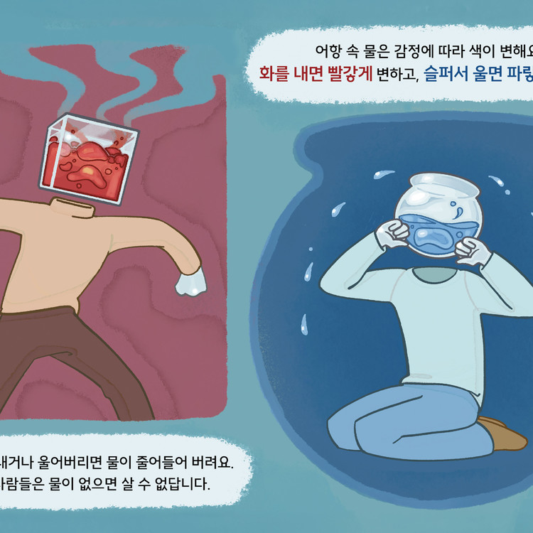 세상 속에서 우리는 종종 자신의 진짜 감정을 숨기며 살아갑니다. 좋은게 좋은거라고 부정적인 감정을 무시하거나 만들지 않으며 감정으로 인한 자기소모를 하지 않으려 노력하기도 합니다. 하지만 마음 속의 각각 다른 감정들은 소모되고 채워지기를 반복하며 사람을 생기있게 만듭니다. 부정적인 감정을 드러내며 몸과 마음이 소모되는 것을 두려워해 무뎌져버린 현대인들을 위한 동화입니다.